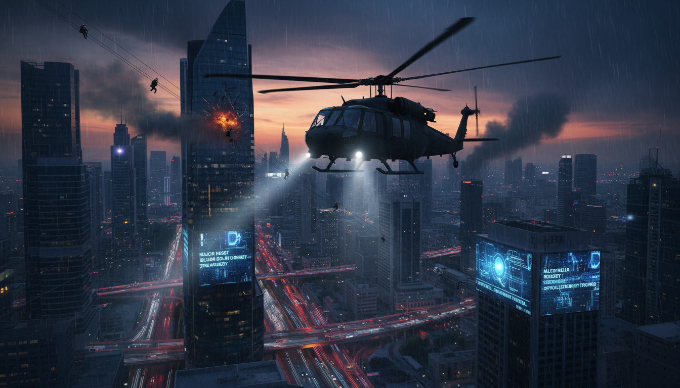2. 23 sep 2009, 05:15: Helikoptern landar på G4S depå, rånet utförs, maskerade män bryter sig in (dmtalkies.com).